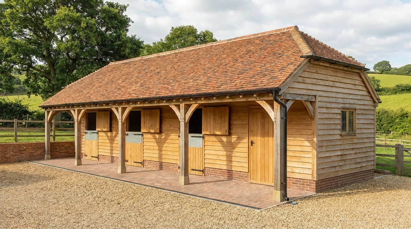 Our oak-framed stables are professional-grade facilities designed by equestrians for horse owners. Because we understand that no two yards or horses are the same, every stable block we build is entirely bespoke, allowing us to match your specific setup, budget, and animal welfare needs.